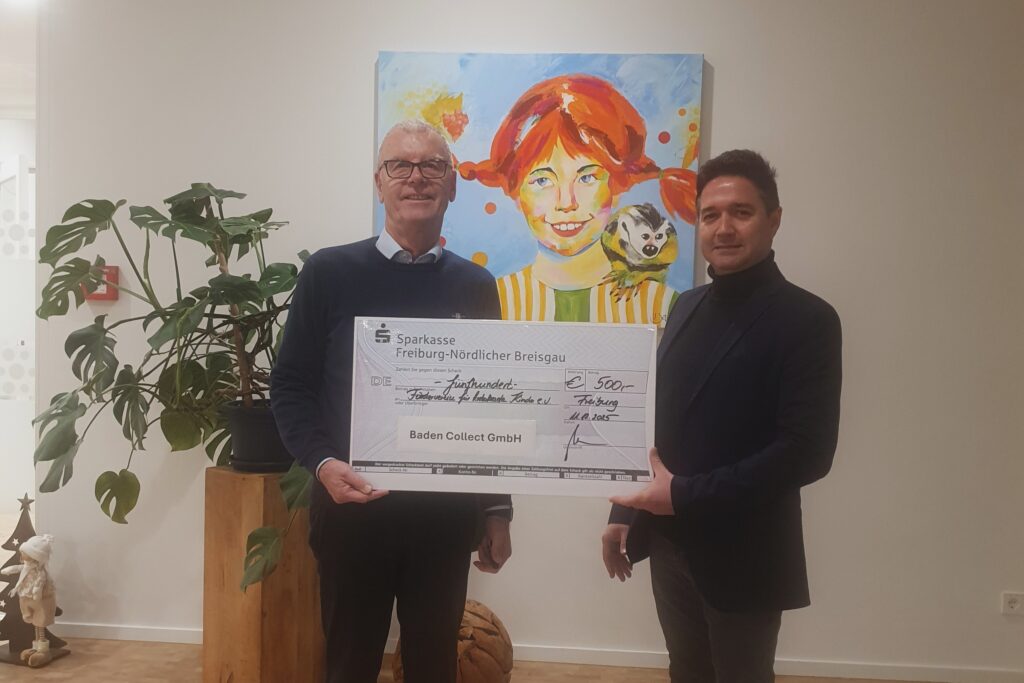 Baden Collect GmbH spendet 500 Euro an den Förderverein für krebskranke Kinder e.V. Freiburg